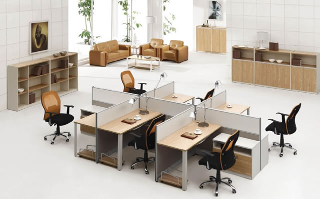 辦公屏風桌從板材來分又分為:顆粒板、密度板、三聚氰胺板等等,不同的板材不同的特性,不同的價格,典致家具常用的有三聚氰胺板和顆粒板。臺面的款式:直臺面和異性臺面,異性臺面做工較為復雜,價格也略高。