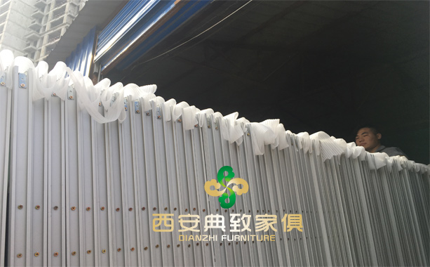因為這次的運貨量比較大,路程也相對較遠(yuǎn),我們典致家俱就找來了更加專業(yè)的加大版貨車來為我們客戶運送我們的辦公家具,并且將貨品都仔細(xì)的包裹起來,避免在運送的途中對我們的屏風(fēng)及其它辦公家具造成損傷。上圖為裝好車的屏風(fēng)準(zhǔn)備拉往匯合點為大車裝車。下圖為裝好的落地柜,工人們正在對落地柜進(jìn)行保護(hù)。