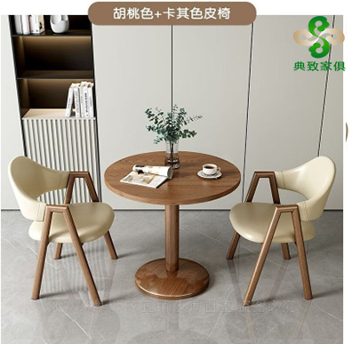 優雅格調,品質生活,休閑桌椅,應有自己的風格,功能性與高顏值兼顧,實木紋理,超強質感,穩重優雅,簡約配套皮椅,皮面光亮易清潔,仿木紋質感金屬框架。更多的選擇,只為成就更好的空間調性,可以定制不同色系,多款面料可選。
